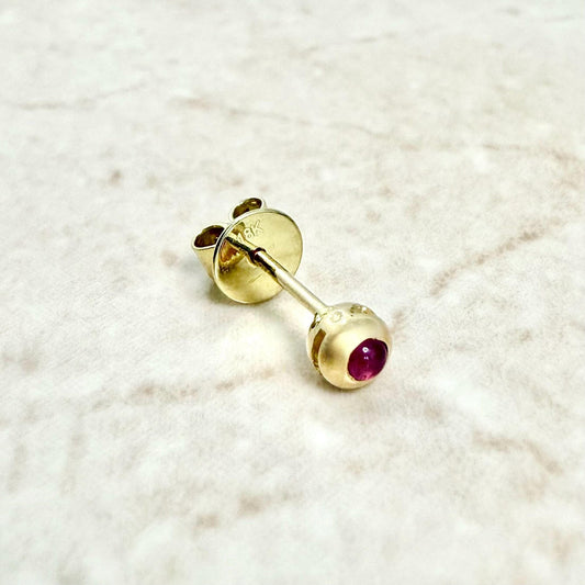 Single 18K Yellow Gold Bezel-Set Natural Ruby Stud Earring