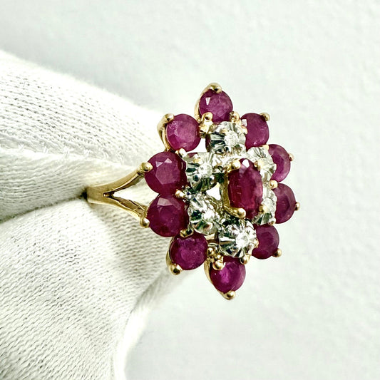 Vintage 14 Karat Gold Natural Ruby & Diamond Cocktail Ring