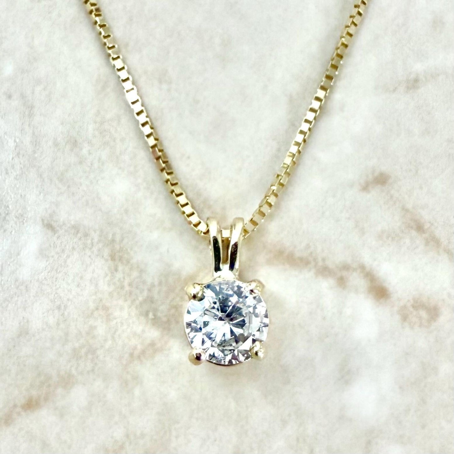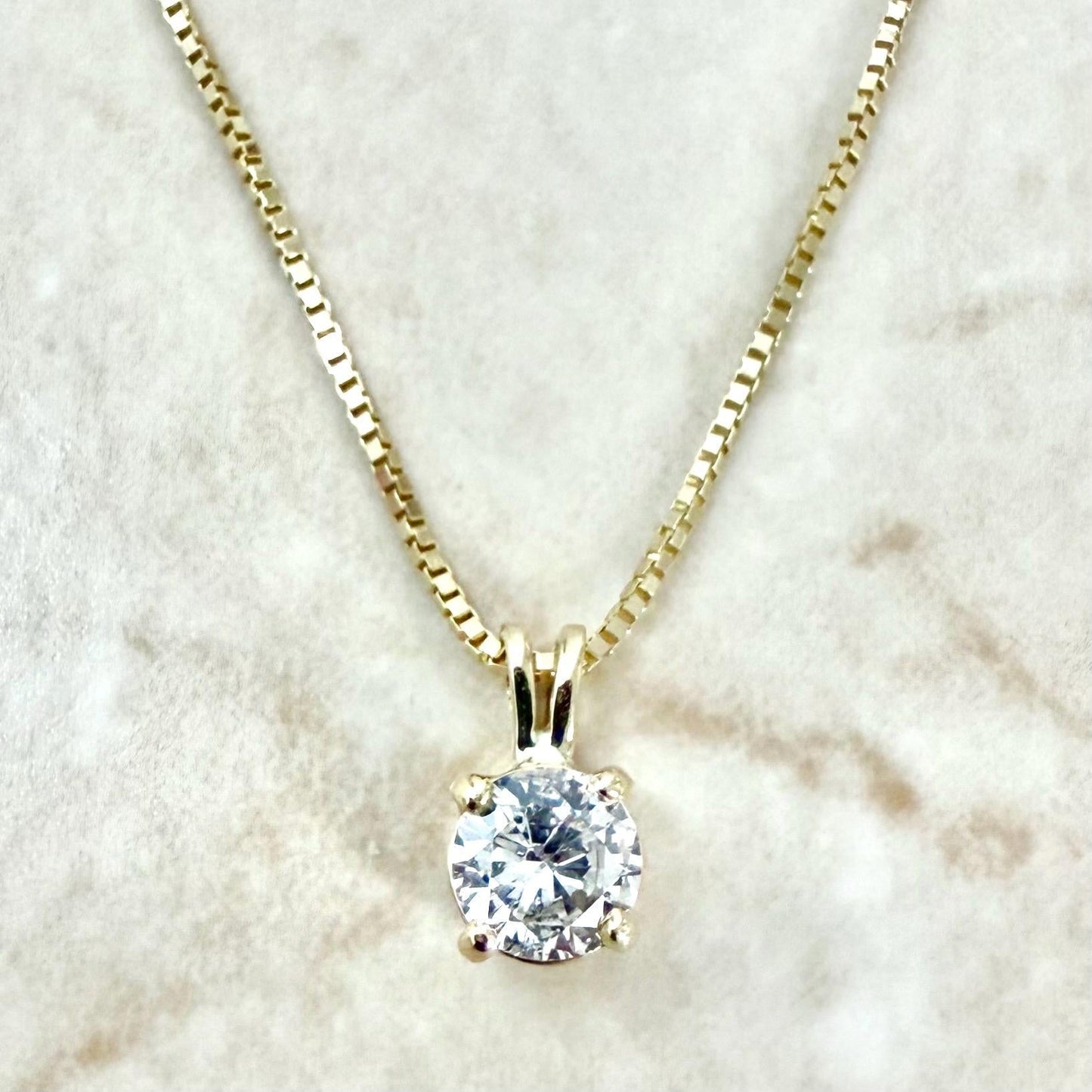14 Karat Yellow Gold 0.70 Carat Diamond Solitaire Necklace