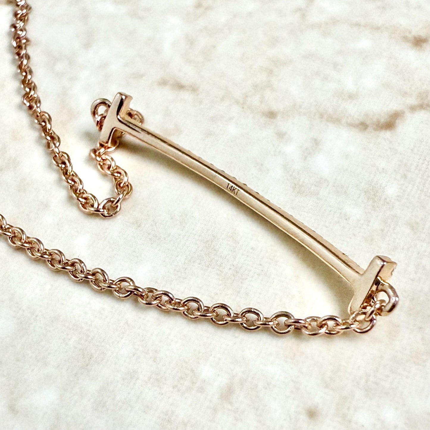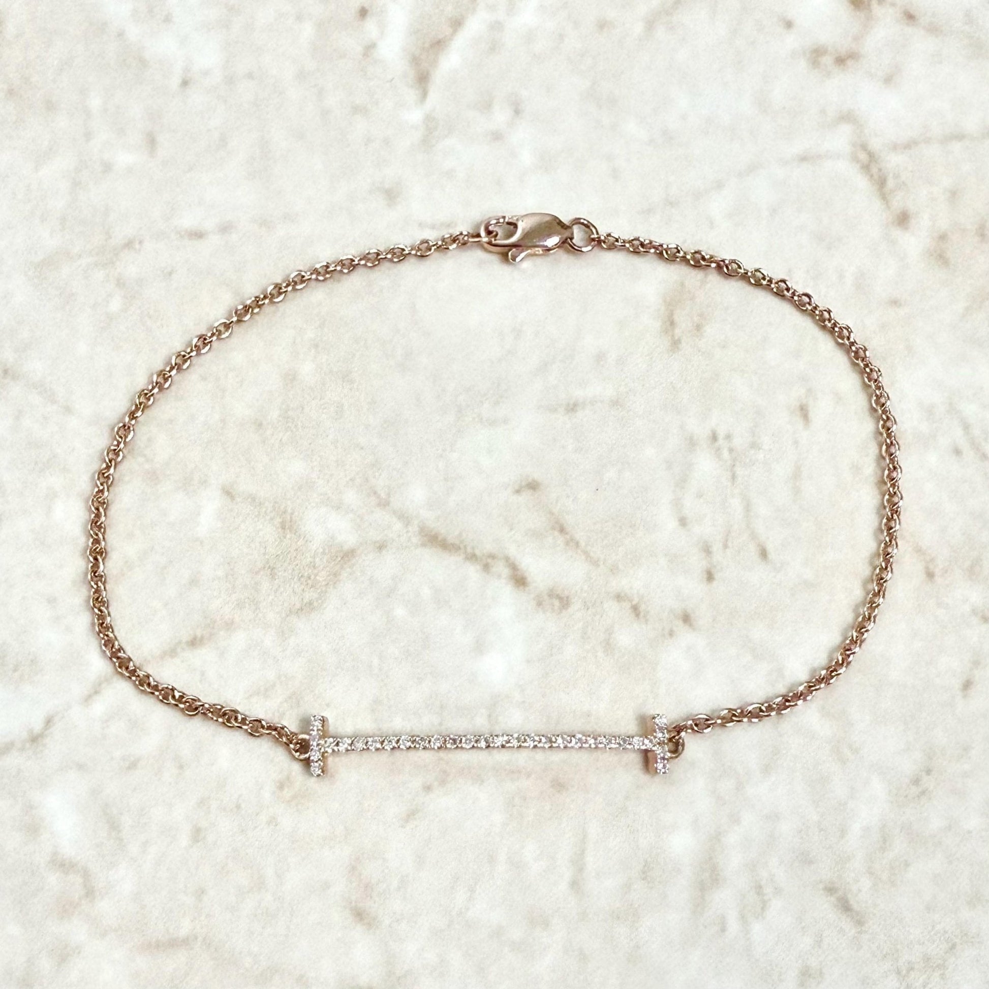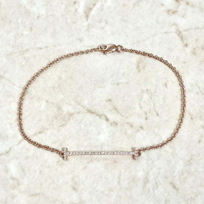 Solid 14K Rose Gold 0.12 Carat Natural Diamond Bar Bracelet