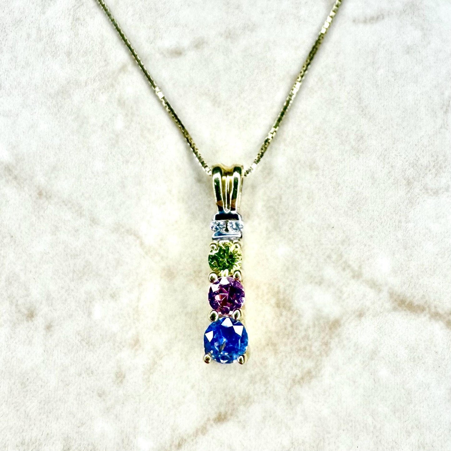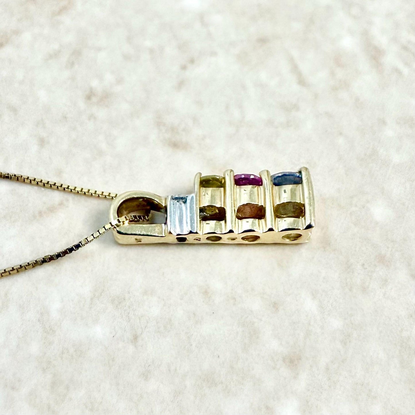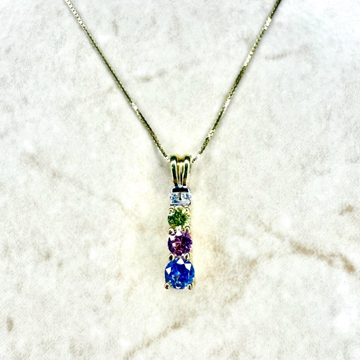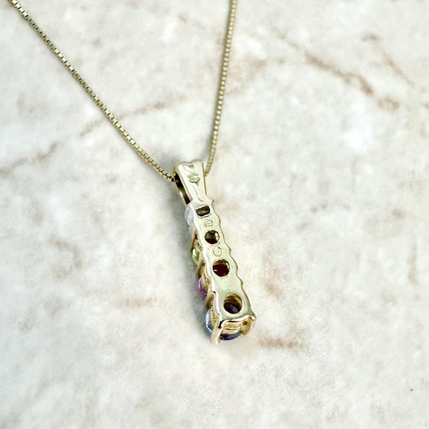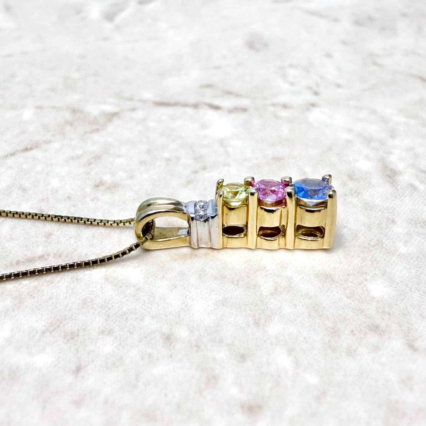 14 Karat Gold Multicolor Sapphire & Diamond Pendant Necklace