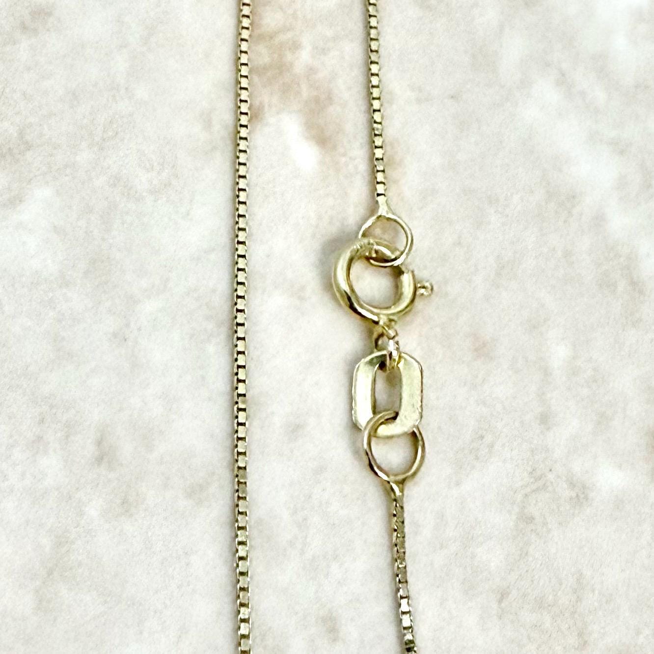 This pendant comes with a 18-inch 14k yellow gold box chain. It is approximately 0.53 mm thick. It is stamped 585 & 14K ITALY with Italian hallmark ⭐️ 1507 VI (VI for Vicenza, Italy).