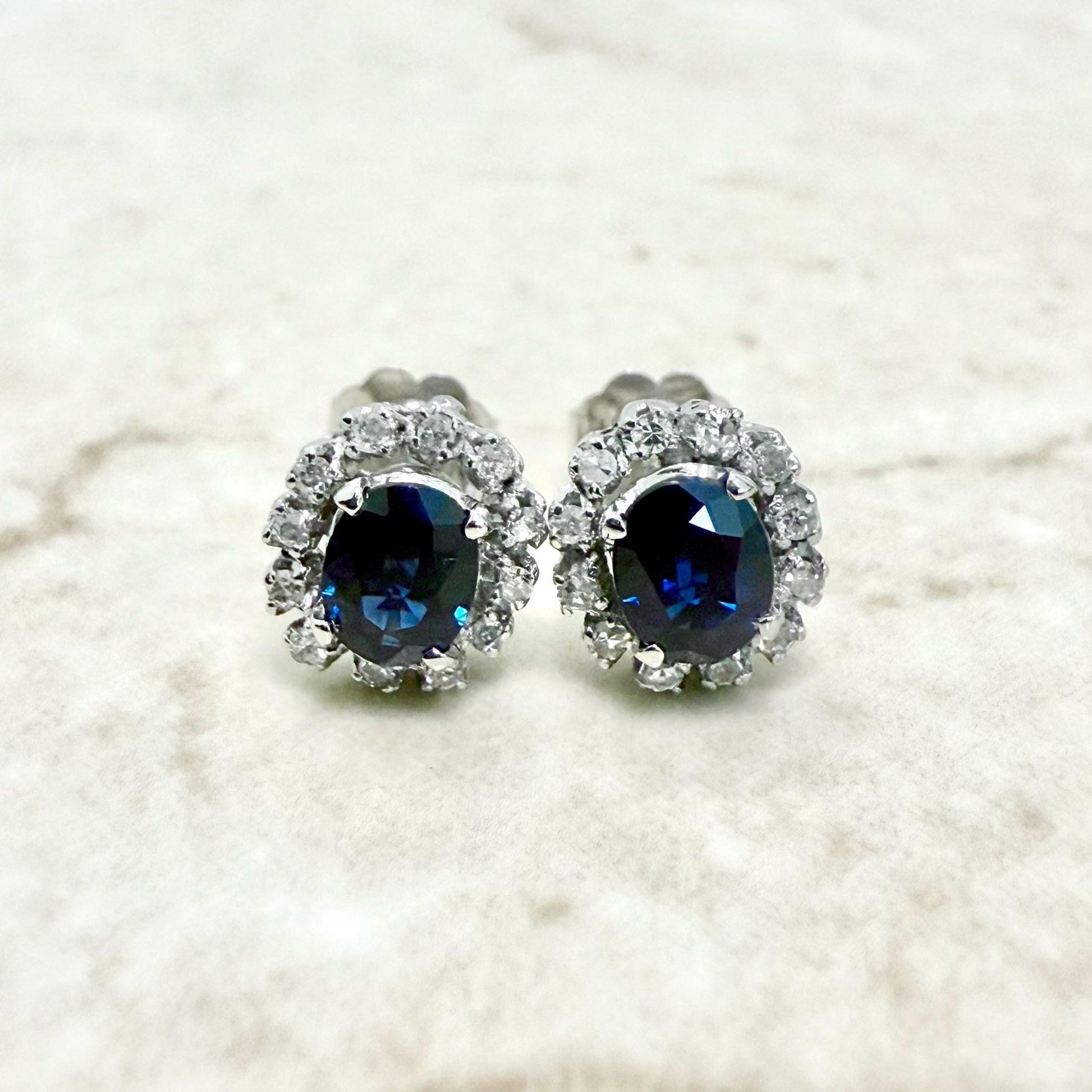 Vintage Platinum & 14K White Gold Oval Sapphire Halo Stud Earrings