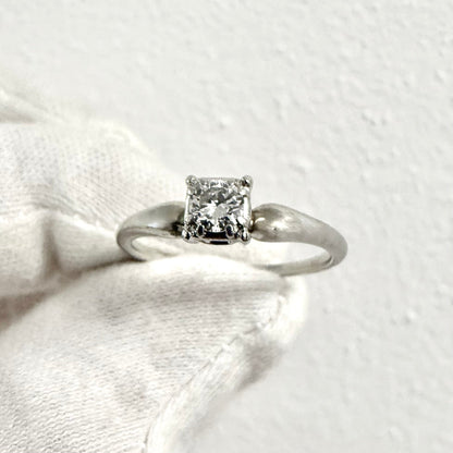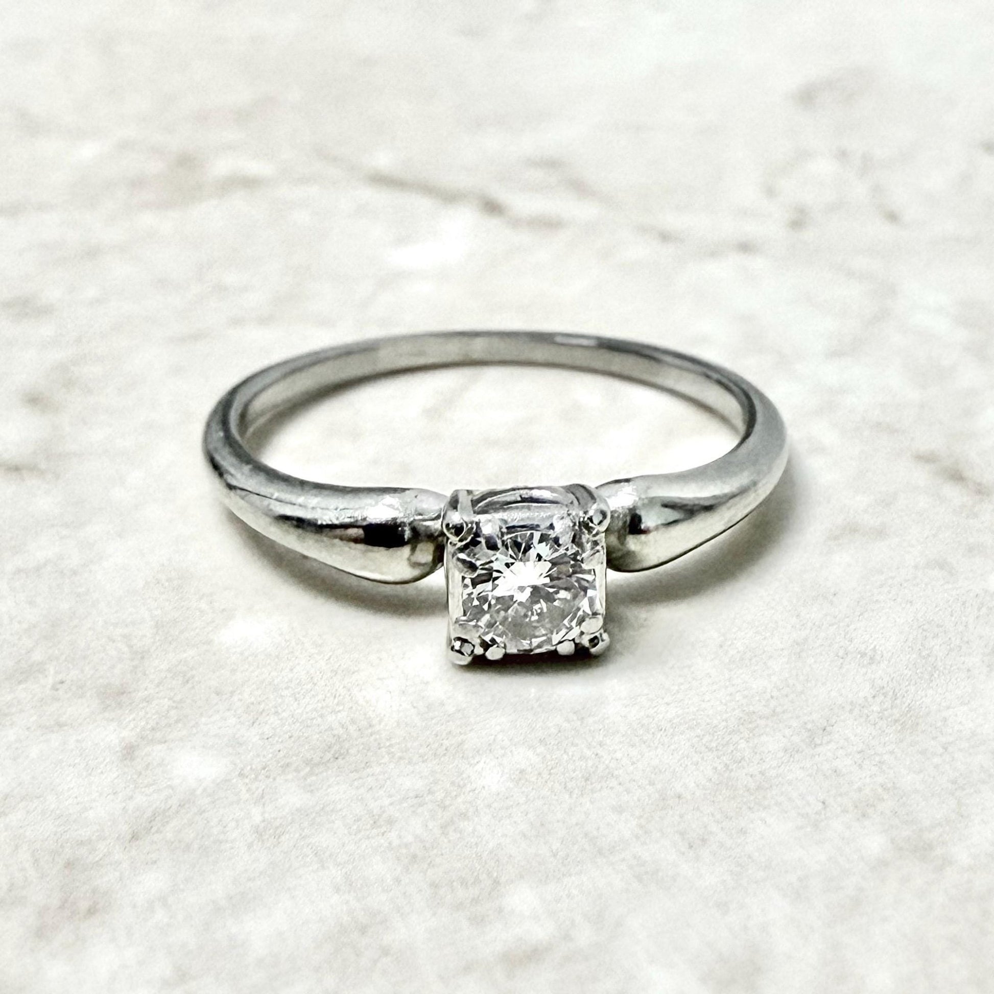 Vintage 1940’s 18 Karat White Gold 0.25 Carat Solitaire Diamond Engagement Ring